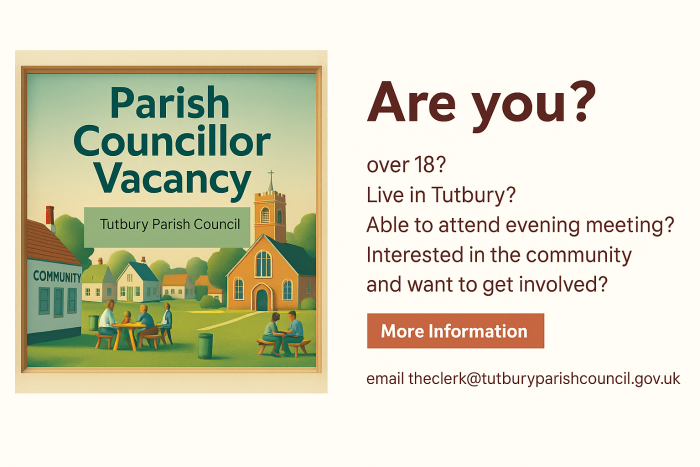 Tutbury Parish Council currently has a vacancy for a Parish Councillor.