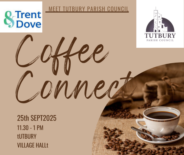 Our Parish Councillors will be attending the Trent and Dove Coffee Connect event on Thursday, 25th September 2025, from 11:30am to 1:00pm at Tutbury Village Hall.